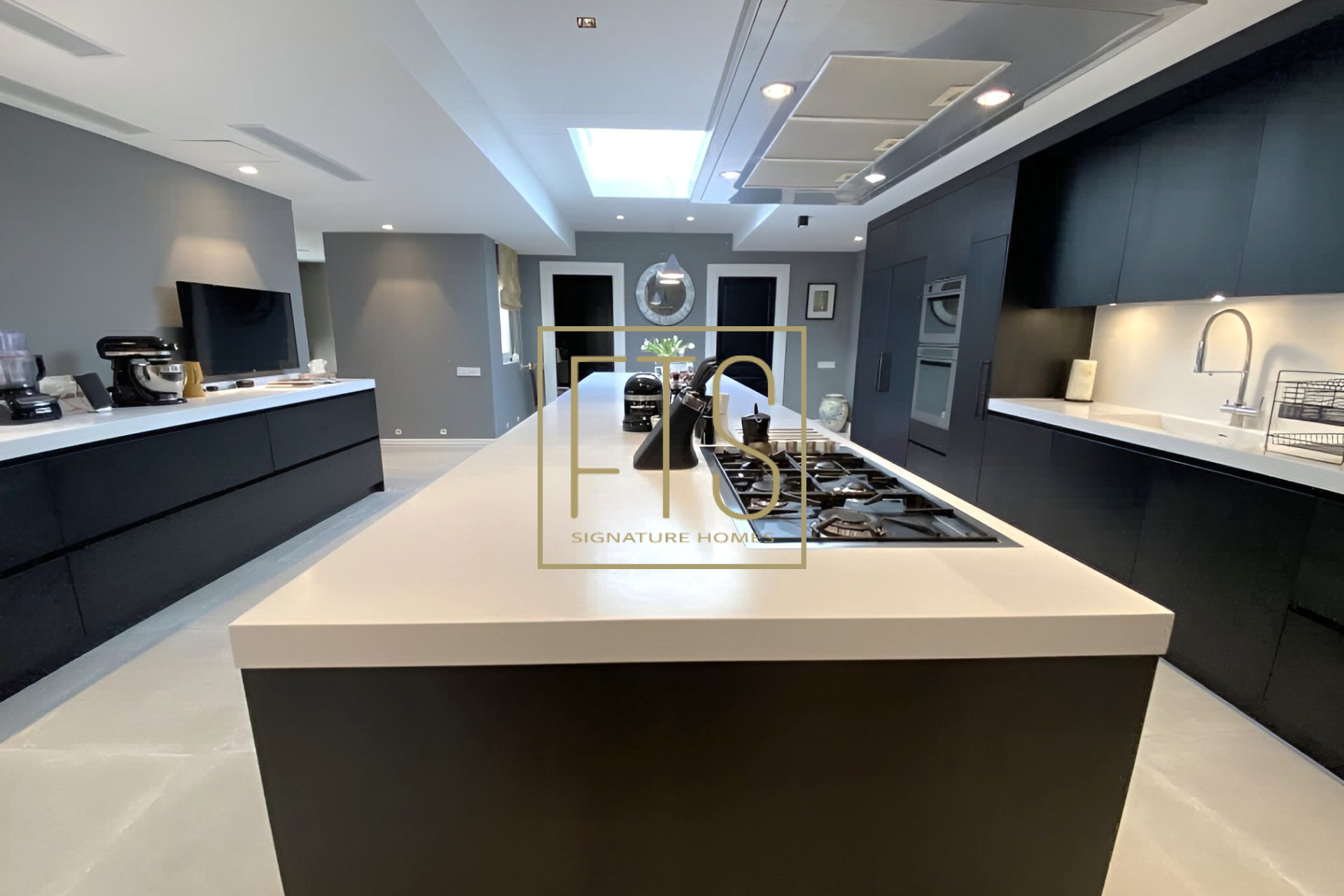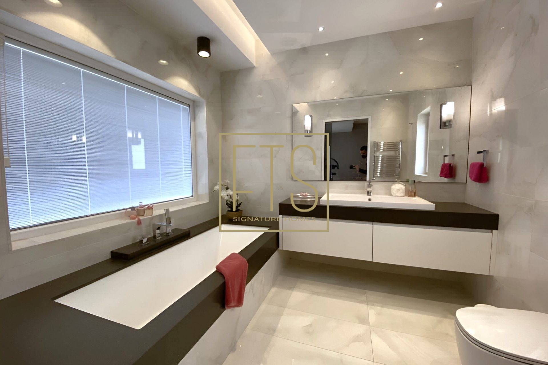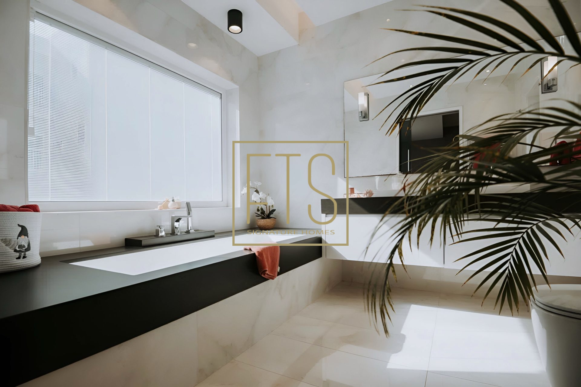 A truly one of a kind luxurious Penthouse, finished to very high specifications, enjoying side sea–views from its spacious front terrace. Layout comprises a living room having a wood burning fireplace leading to a 70sqm front terrace with a small swimming pool ideal for entertaining, a fully fitted kitchen, 2 double bedrooms both of them with en-suite facilities and the main with a walk-in wardrobe, guest bathroom, laundry room, fully equipped cinema room and a back terrace. A one car lock–up garage and full airspace compliment this property.