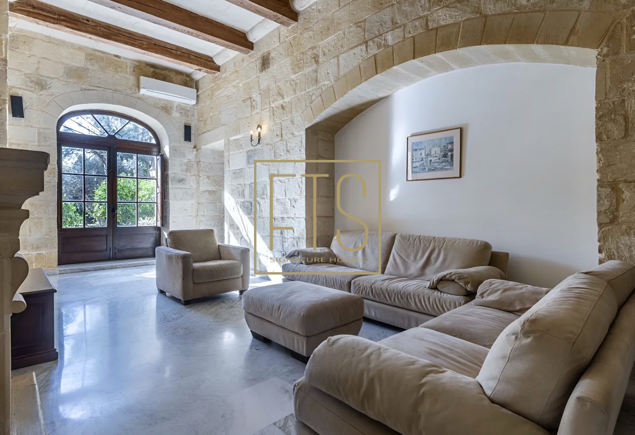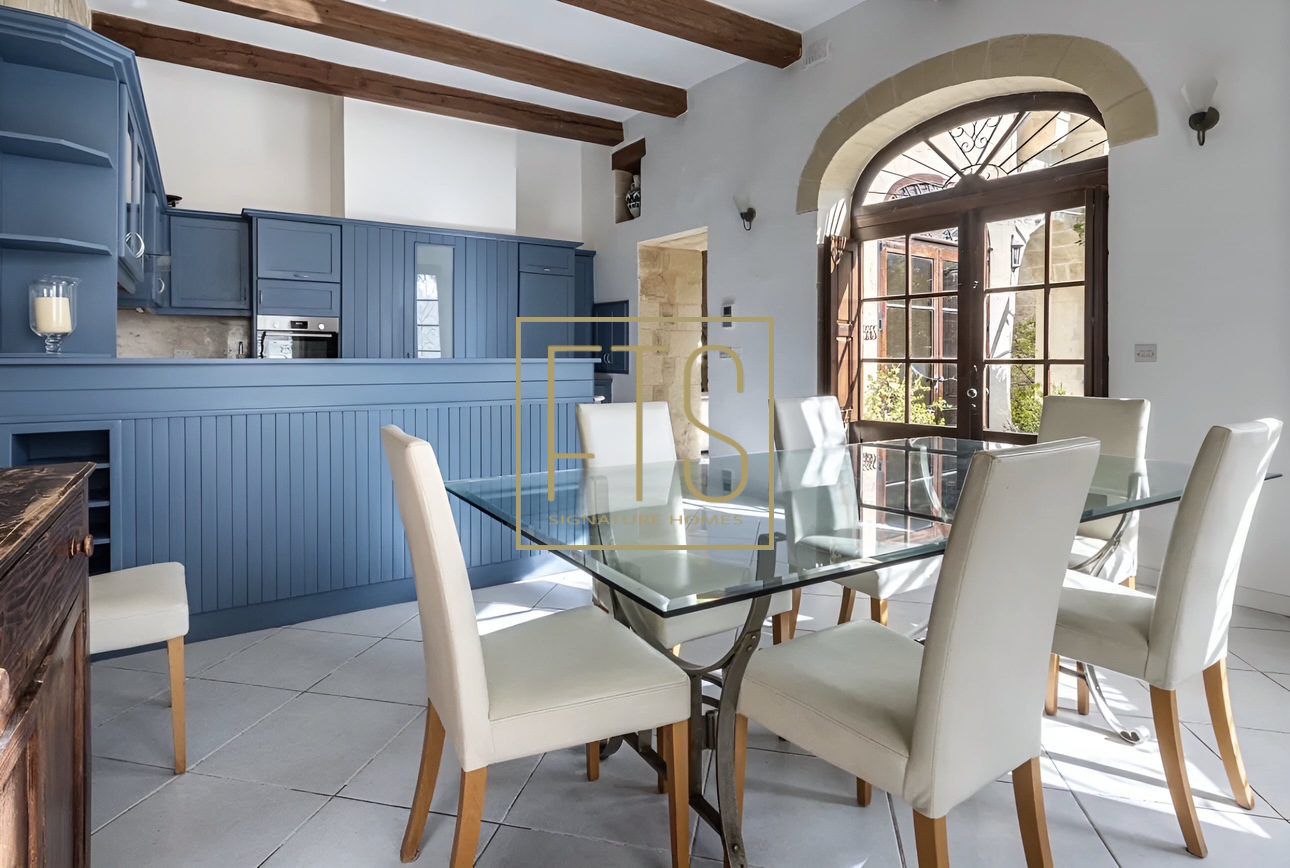 A picturesque house surrounded by fields, offering a serene and untouched natural landscape. A spacious open-plan design bathes the interior in abundant natural light, with a large window and glass door framing the garden and pool. The house boasts 3 generous bedrooms, two of which have en-suite facilities. Its distinctive split roof design adds architectural character, while a substantial skylight crowns the central space, bathing it in heavenly radiance. For added convenience and functionality, an interconnecting garage is included.