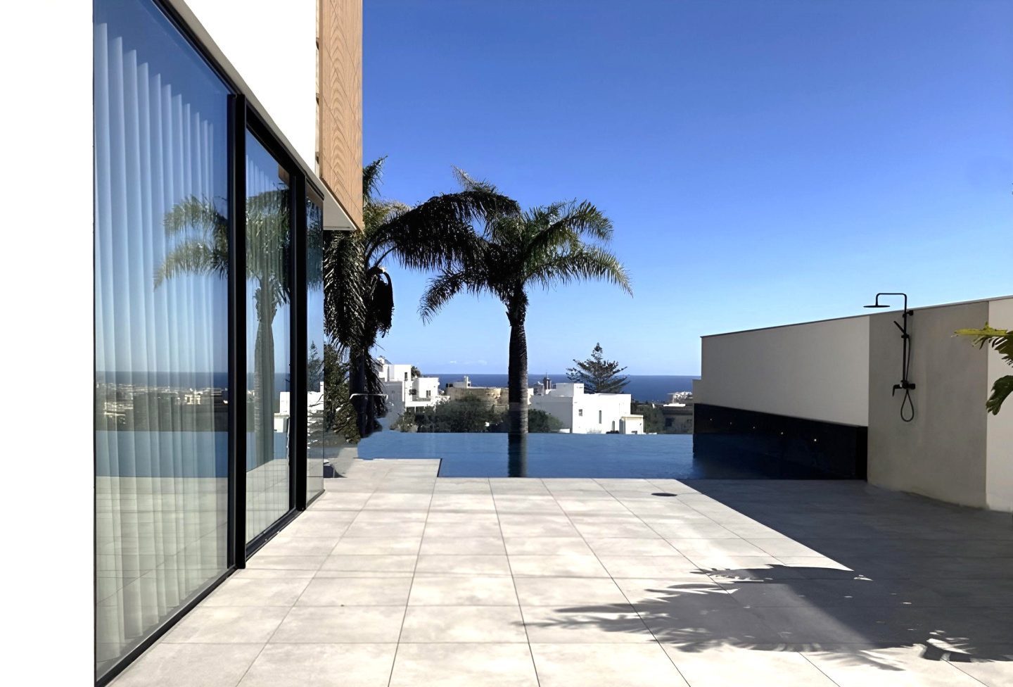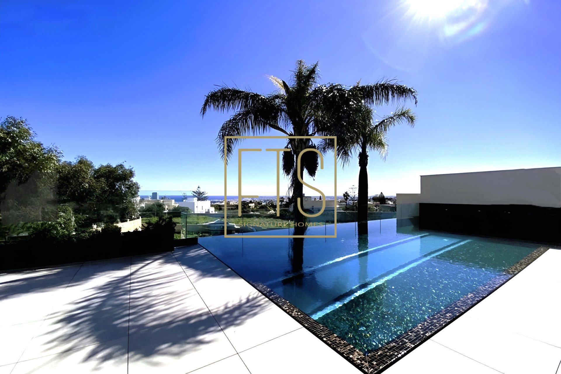 An exceptional residence, located within an exclusive, tranquil villa community. Crafted with meticulous attention to detail, this semi-detached villa exudes sophistication and elegance and been finished to the highest standards. Spanning on five levels and serviced by a lift, the residence blends functionality. Captivating open-plan design, featuring a cosy sitting area with a fireplace, a fully-equipped kitchen and breakfast area complete with modern appliances and a spacious living and dining area that seamlessly transitions to the outdoor area boasting an infinity pool, outdoor kitchen, and BBQ area and offering unobstructed views. On upper level 4 luxurious double bedrooms, each boasting walk-in wardrobes, en-suite facilities and private balconies. The master suite further impresses with a gas fireplace and a generous front terrace enjoying panoramic views. The rooftop level hosts a home office and a bathroom and leading to an enchanting roof–terrace, with another BBQ area and a fire– pit. Descending to the lower levels, several amenities are offered for relaxation and entertainment. Level -1 offers an indoor heated pool, Sauna, Turkish steam room, lounge area with Cinema, Bar, and a fully equipped Games room. Additionally, a 4-car lock-up garage provides ample parking space. Level -2 is dedicated to an impressive Sports area, boasting a two-lane Bowling alley, Squash court, multipurpose sports room, and fully-equipped Gym and exercise room, shower rooms and a lounge area. No expense has been spared in ensuring utmost comfort and convenience, with features such as marble flooring, air–conditioning, intelligent lighting, electrical blinds and curtains, Laundry room, server rooms on every level and ample storage spaces. This sunning property offers a harmonious blend of luxury, functionality, and tranquillity and presents an unparalleled opportunity for the ones seeking an extraordinary living experience.