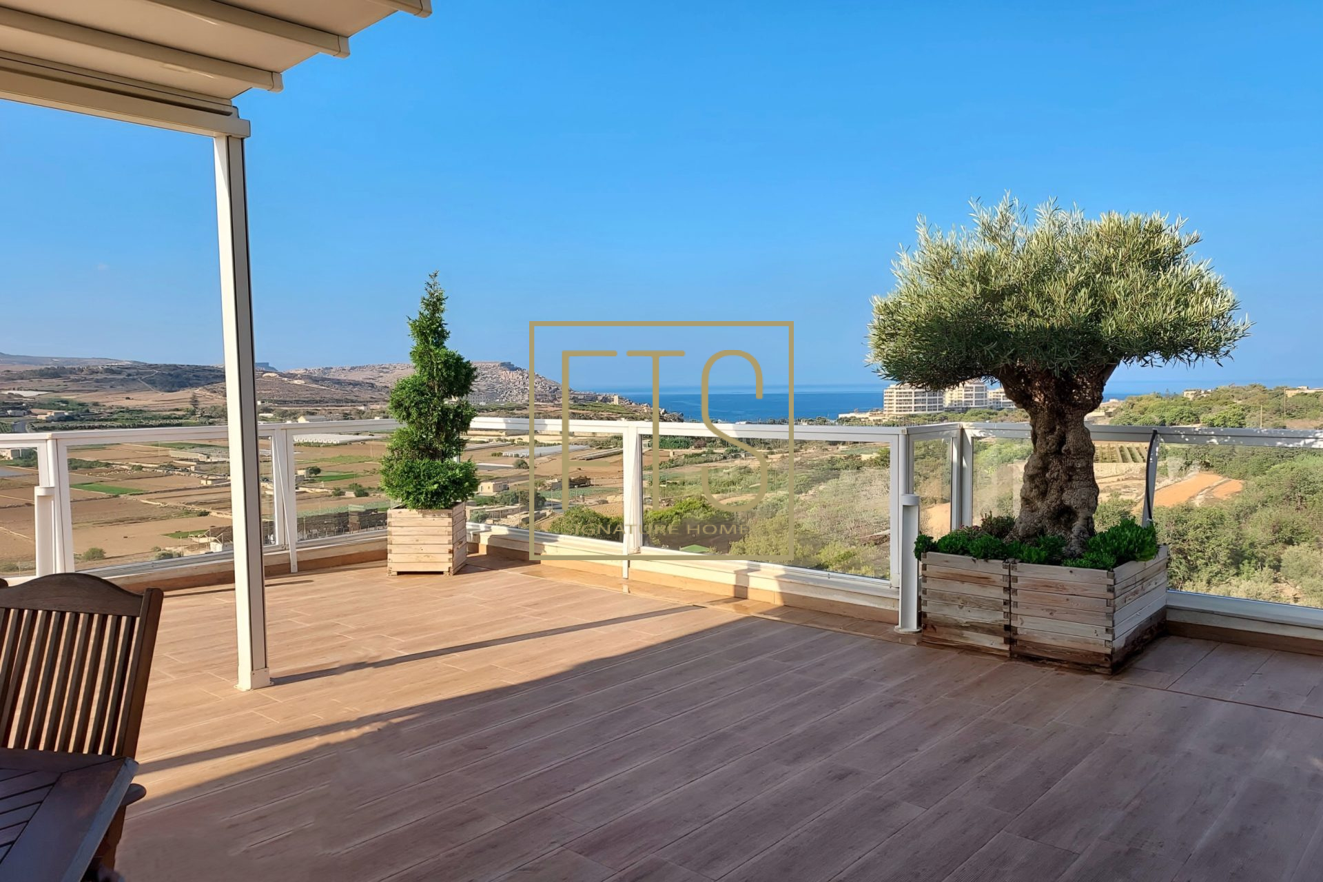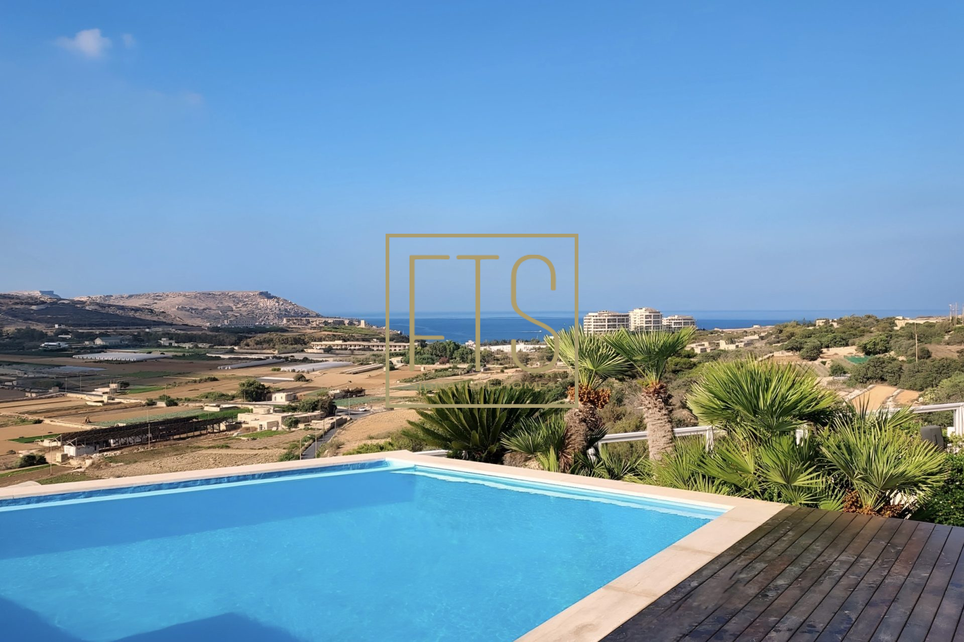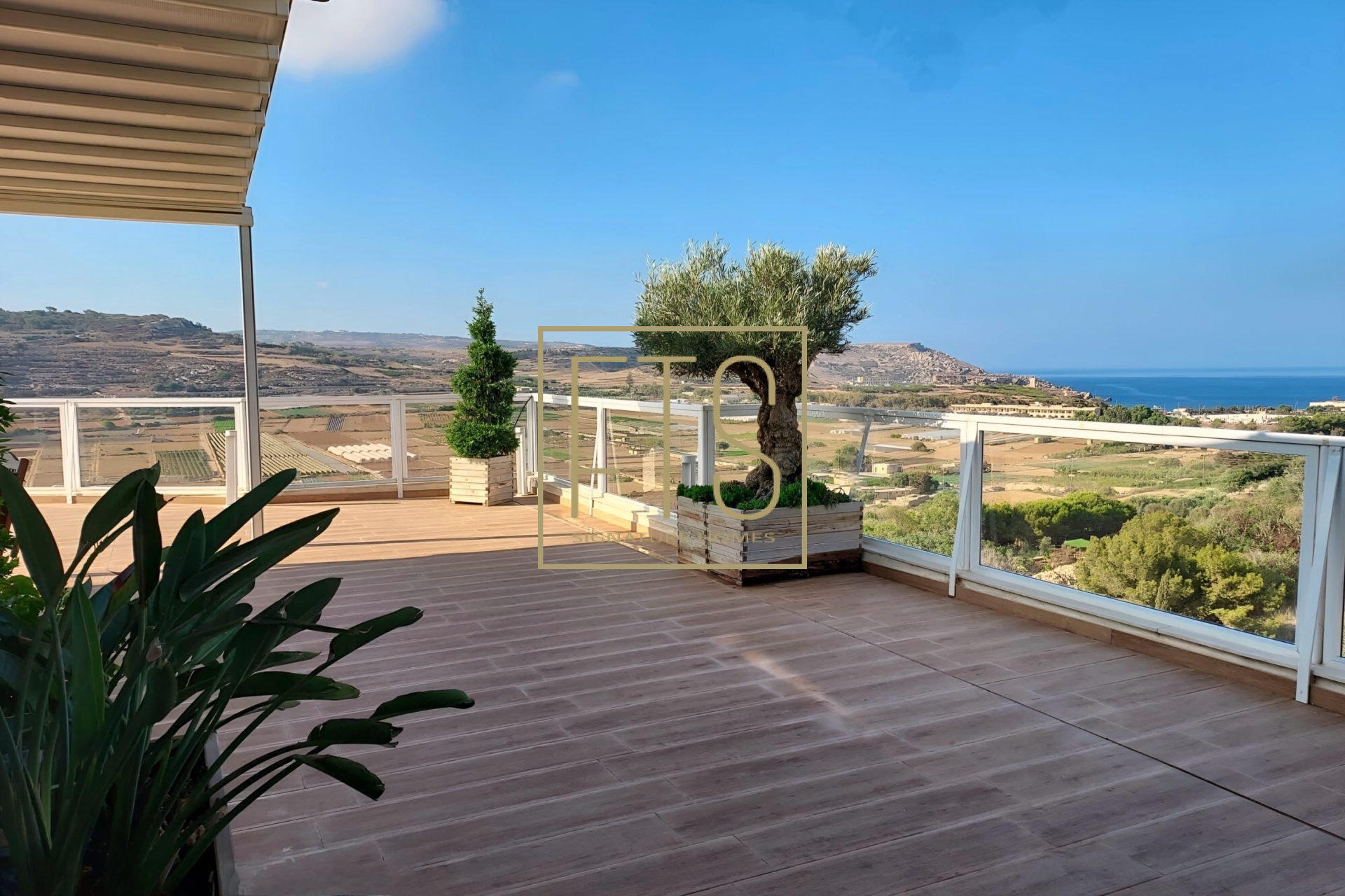 Step into this expansive, light-filled property where generous open spaces meet breath-taking views in every direction. Floor-to-ceiling windows frame sweeping panoramic views of the surrounding landscape, bringing warmth and natural light into every room. The layout is thoughtfully designed, featuring a spacious living area that is perfect for entertaining, a modern kitchen with high-end finishes and appliances, and serene bedrooms that offer both comfort and privacy. Elegant details are present throughout the home, along with multiple vantage points for enjoying stunning sunsets from the massive terrace, which also features a pool and decking area. This property seamlessly blends luxury, tranquility, and sophistication into one exceptional living experience. The layout comprises an entrance hall, a fitted kitchen/living/dining area, a bathroom, 3 double bedrooms (main with en-suite) and a laundry room. Further complementing this property is an underlying garage that accommodates 4 cars and provides ample storage.