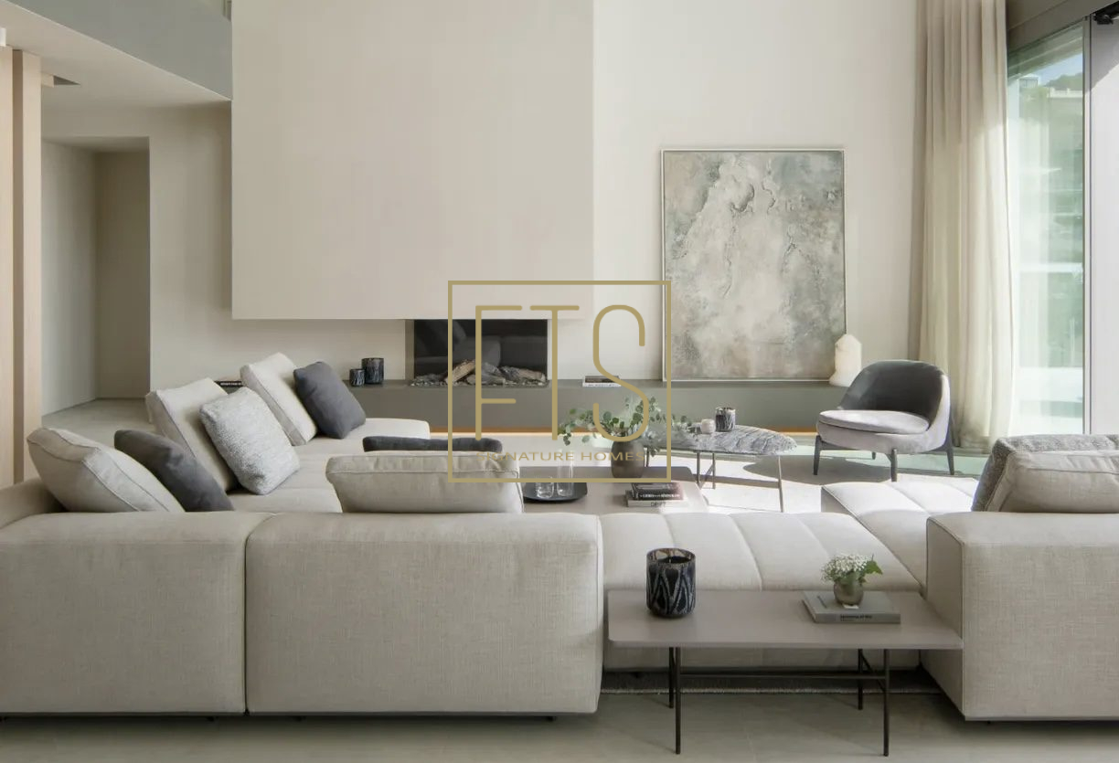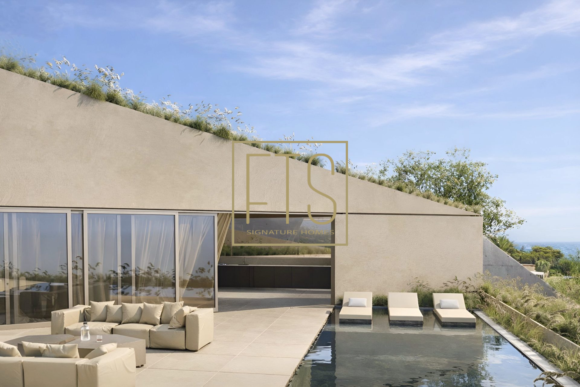 Project of two contemporary villas carefully integrated into a sloping landscape, designed to sit harmoniously within their natural surroundings rather than dominate them. The architecture adopts a terraced composition, allowing each villa to step down the site and enjoy open views, privacy, and a strong connection to the terrain. Generous glazing and thoughtfully oriented openings ensure that the primary living spaces are filled with natural light and oriented towards the views. Each villa is set on a footprint of 500sq.m. and features expansive indoor–outdoor living areas that flow seamlessly onto large terraces, creating ideal settings for entertaining, relaxation, and everyday living. Private pools and outdoor leisure areas are discreetly positioned to maximize privacy while maintaining a strong visual link to the surroundings. Internally, the villas are designed with a strong emphasis on space, comfort, and functionality. Private bedroom suites, wellness and leisure spaces, and extensive ancillary areas are distributed across multiple levels, all connected via lifts and staircases for ease of movement. Despite their substantial scale, both residences maintain a calm and understated character, where luxury is expressed through proportion, light, and quality rather than excess. Together, the two villas form a cohesive architectural composition that embodies a refined interpretation of modern Mediterranean living—contemporary, elegant, and timeless, with a deep respect for the site and its natural context.